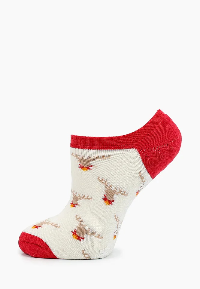 Низкие носки, украшенные новогодними символами, можно купить себе или подарить близким. Такую хлопковую версию лучше носить дома, потому что в слишком коротких носках ты быстро замерзнешь.