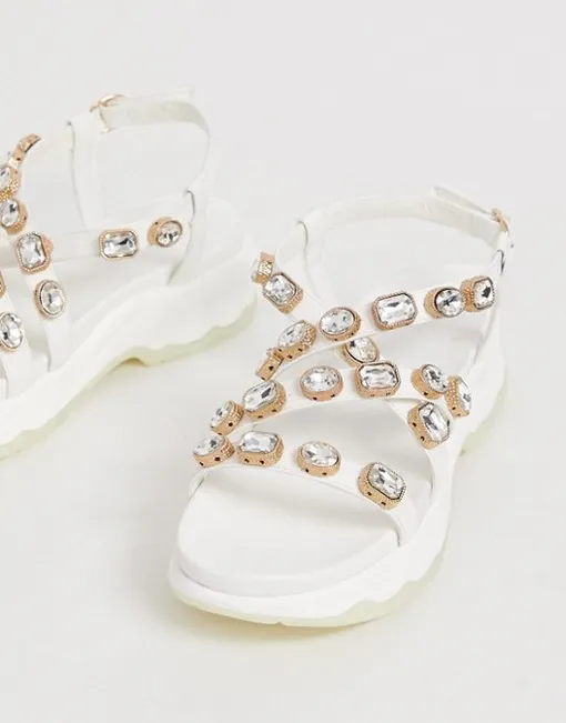 Тренд настолько пришелся по вкусу аудитории, что его подхватили и люкс, и массовый сегмент. Цена разная – от 1500 до 80 000 рублей; всё зависит от твоего желания и кошелька. Мы собрали доступные варианты, на которые стоит обратить внимание. Предупреждаем сразу: в конце промелькнут довольно дорогостоящие сандалии; вкладываться в них или использовать для вдохновения – решать тебе, но мы не уверены, что тренд просуществует больше одного сезона.