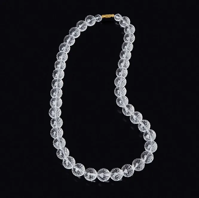 Стеклянные бусы из крупных прозрачных шариков выглядят очень круто – особенно если носить их с минималистской одеждой в стиле бельгийских дизайнеров. Носи их, например, с однотонной гладкой водолазкой или топом, не менее выигрышно прозрачные стеклянные бусины будут смотреться и на коже – если надеть, например, платье с открытыми плечами.