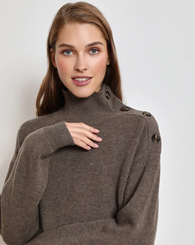 Если ты не фанатка свитеров с вышивками, пестрыми узорами, россыпью из бисера и бусин, то обрати внимание на интересную модель с минималистичным дизайном в виде крупных пуговиц на одном плече. Этот свитер можно носить обычным способом или расстегнуть пуговицы и спустить его на одно плечо, что придаст образу немного шарма.