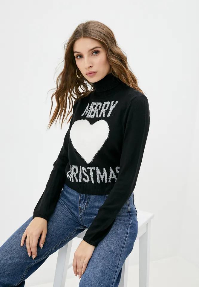 Ну а поскольку Новый год и Рождество уже не за горами, тематический свитер точно лишним не будет. Например, этот черном цвета с лаконичной надписью уместен не только на новогодней вечеринке, но и вполне органично впишется в повседневный образ с джинсами или лаконичной юбкой.