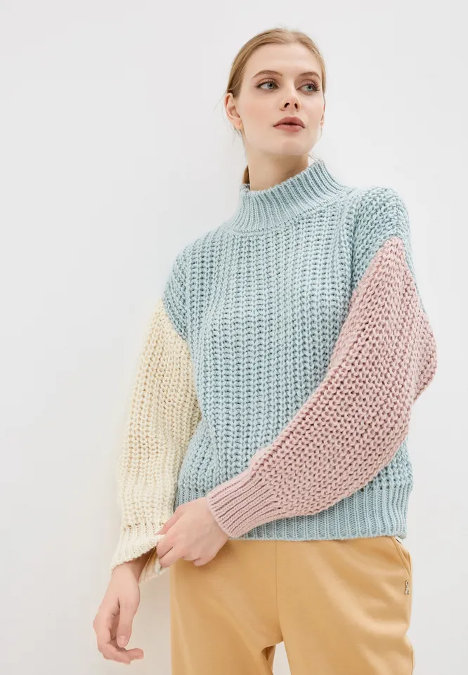 Добавить цвета повседневным лукам поможет теплый свитер с высоким горлом в стиле колор-блок. Наш выбор – модель с цветовыми блоками пастельных оттенков. Благодаря нежным приглушенным тонам этот свитер легко комбинируется как с базовыми, так и с трендовыми, яркими и принтованными вещами. Попробуй подобрать брюки или юбку цвета, имеющегося на свитере, но на пару тонов насыщеннее – так ты получишь интересный, сложносочиненный лук из самых простых вещей. Такой свитер вполне уместен и в вечернем наряде: дополни его плиссированной юбкой серебристого цвета, сумочкой с декором и объемными серьгами-люстрами.