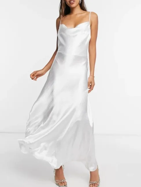 Еще один стильный наряд в белых тонах – длинное лоснящееся платье-комбинация, которое, как и костюм, ты сможешь носить весь оставшийся год. Платье органично смотрится с чокерами в стразах, аккуратными кулонами и жемчужными нитями. Из украшений также подойдут браслеты-манжеты на обе руки и инкрустированный камнями ободок. По желанию поверх платья можно накинуть жакет, пушистый белый кардиган оверсайз или нелепый новогодний свитер с оленями и бубенчиками.