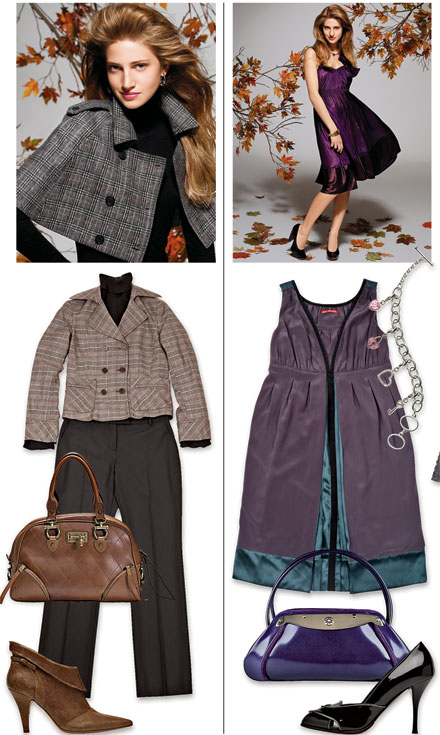 ![]() | 1. Водолазка, In Wear; жакет, Mango; Брюки, Alain Manoukian; Сумка, Barbara Bui; Ботильоны, Fornarina 2. Платье, Alain Manoukian; Браслет, Swarovski; Сумка, Furla; Туфли, Loriblu |
