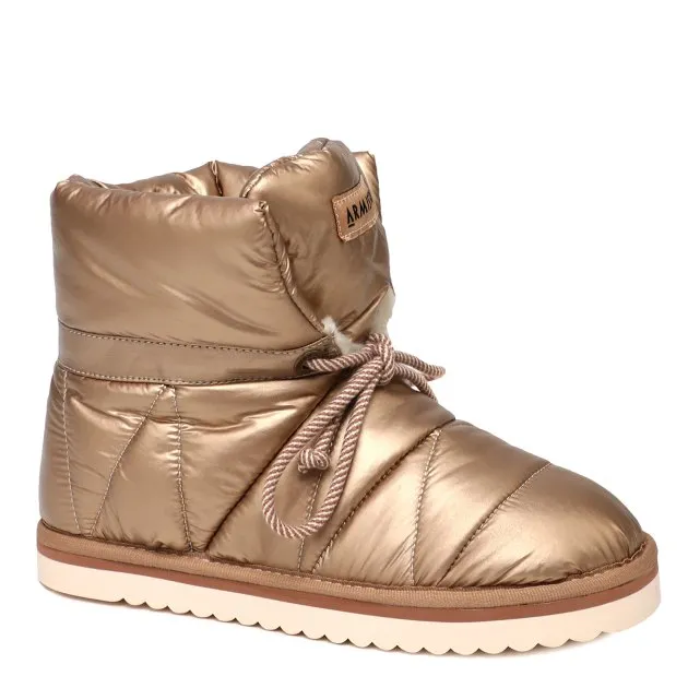 «Луноходы» в целом — это зимние полусапоги или укороченные сапоги, выполненные из водоотталкивающих материалов и оснащенные мощной прожекторной подошвой. Дутики при этом выглядят проще, чем мунбуты: их основная фишка — стеганая поверхность. А вот мунбуты ты узнаешь по традиционной шнуровке — это их отличительная особенность.