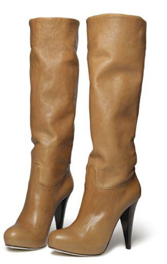 Мягкая кожа, практически лайка, или замша, украшенная вышивкой, используются для классических сапог до колена, отличающихся скрытой «встроенной» платформой. В этом новом силуэте сочетаются непринужденная яркость и динамичная современная форма, что вместе выглядит крайне женственно.