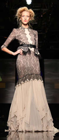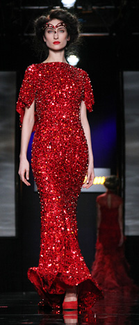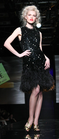 В коллекции Дженни Пэкхэм, также известная под именем Первой леди вечернего платья, не стала изменять себе и отказываться от присущей ей кричащей яркости.