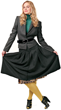 ![]() | На прогулкуЮбка не обязательно должна быть прямого покроя, складки или сборка изменит силуэт из прямоугольника в трапецию, придадут женственность и не нарушат дресс-кода. Пышная юбка в сочетании со строгим пиджаком – комплект для романтичных натур. Обязательный аксессуар – ремень, чтобы подчеркнуть талию. Костюм, Dolce&Gabbana, 107 800 руб. Водолазка, SoFrench, 1890 руб. Гольфы, Liviana Conti, 1279 руб. Ботильоны, Aldo, 5990 руб |