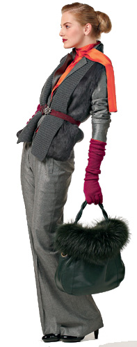 | На встречу Как совместить модные тенденции и строгий дресс-код? Очень просто! Надень к строгому костюму меховой жилет, цвет подбирай сдержанный – в тон. Серый шерстяной деловой костюм носи с меховой жилеткой, она может заменить плащ в прохладное время года. Костюм, Massimo Dutti, 8750 руб. Блуза, Fairly, 5733 руб. Жилет, Anna Rita N, 18 000 руб. Ремень, Patrizia Pepe, 9500 руб. Перчатки, Nude, 7000 руб. Сумка, Furla, 38 000 руб. Туфли, Salvatore Ferragamo, 16 720 руб. | ![]() |