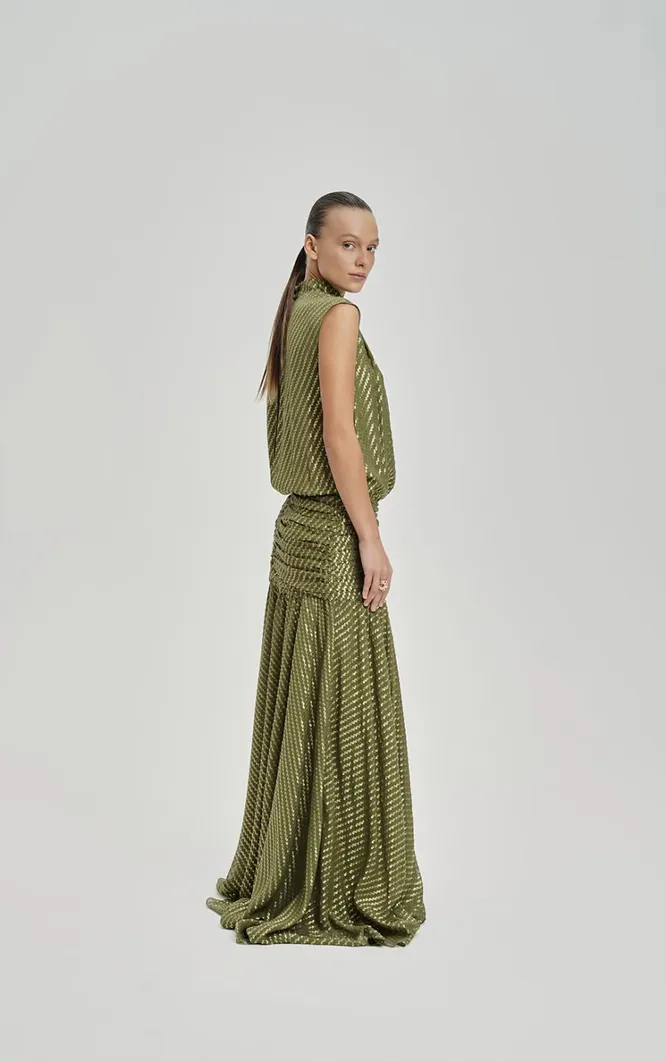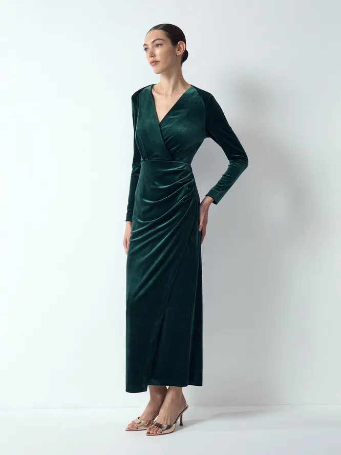 «Вшитый» эффект стройности: 12 нарядных платьев с драпировкой на животе