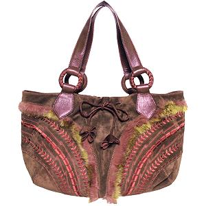 Дополнить ансамбль предлагаем сумочками на выбор: либо цвета морской волны от Betsey Johnson со стильными молниями, либо коричнево-фиолетовой сумочкой от MAXX New York Donatello с декорами из меха и романтичной шелковой вышивкой.