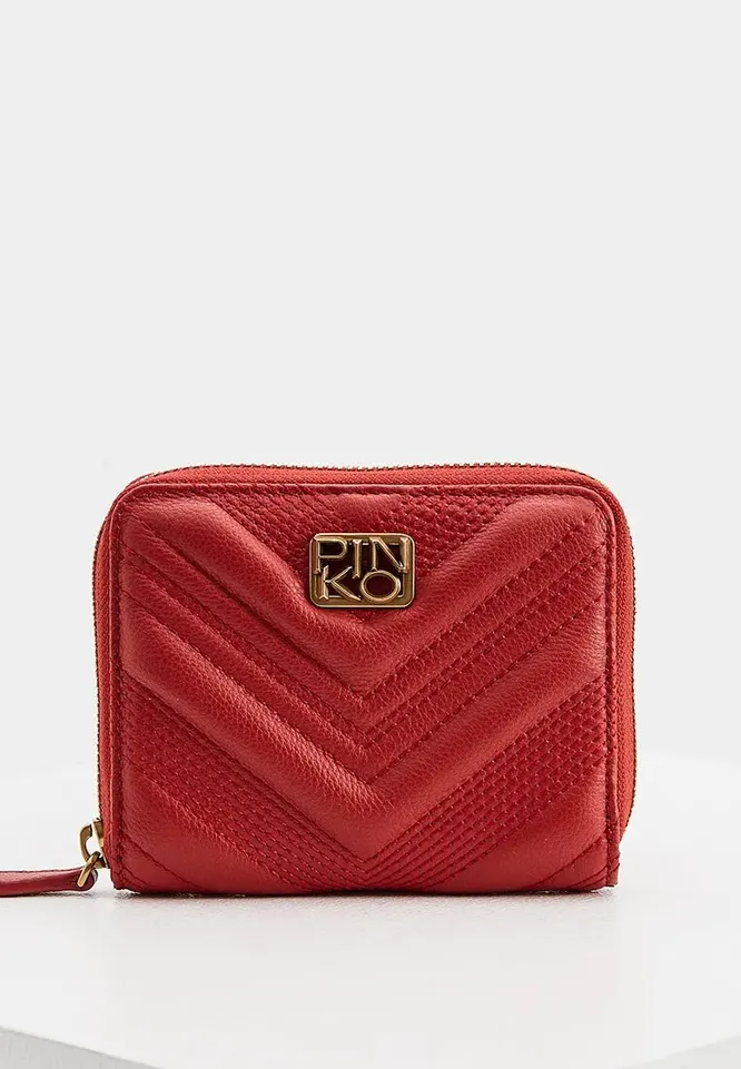 Удобный и стильный кошелек от Pinko — это необычный женский аксессуар, который тебе захочется доставать из сумки вновь и вновь. Красный кожаный кошелек украшен стеганой текстурой и аккуратной брендовой пряжкой. Функциональность тоже не подкачала — аксессуар дополнен застежкой на молнии, 2 слотами для купюр, отделением для монет и 7 прорезями для банковских карт.