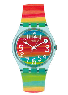 [/upload/attach/e15/e15e93199d7da1744247bcfc8c3fb175.jpg] Лето пора отдыха, новых впечатлений и ощущений. Только летом возможность попасть под дождь не разочаровывает. А бывает и наоборот восхищает. К примеру, если ты попала под теплый ливень и тебе посчастливилось увидеть двойную радугу на небе. Радуга счастливый знак! Поэтому дизайнеры Swatch решили добавить нам счастья в каждый день. Симпатичные и удобные часы в стиле casual могут пригодиться тебе на отдыхе. Они водостойкие, так что можешь покорять в них даже моря. Раскрась свое настроение в цвета радуги!. Источник/фото: