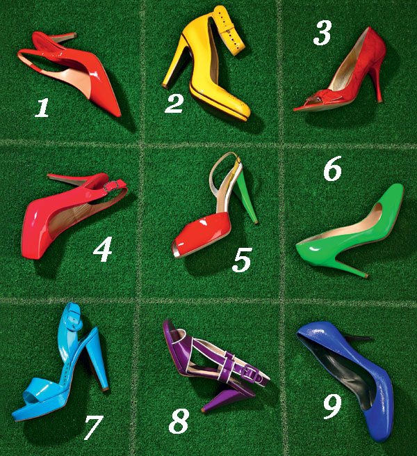 2. Rocco P. 3. Dino Bigioni. 4. Nando Muzi. 5. Giuseppe Zanotti Design. 6. Nando Muzi. 7. Walter Steiger. 8. Eva Turner. 9. Pinko |