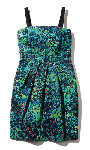 «Когда смотришь на зеленое, глаза отдыхают» – вот уж про это платье так не скажешь. Девушка, выбравшая «подводный» принт и кокетливый крой, точно знает: она привлекает взгляды и заставляет сердца биться сильнее.