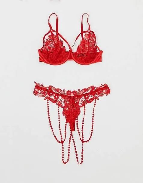 2. Комплект из красного кружевного бюстгальтера с вырезами и трусов Ann Summers Neva