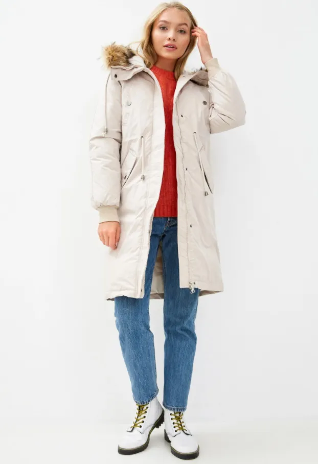 Освежить образы поможет пуховик и женская парка в белом или кремовом цвете. Мы выбрали удобную модель длиной до середины бедра, которая выполнена из износостойкого влагоотталкивающего текстиля. Внутри – плотный слой искусственного утеплителя. Белая парка легко миксуется практически со всеми вещами повседневного гардероба. Носи ее с джинсами и ботинками, шерстяными брюками и остроносыми кожаными сапогами, плотными юбками плиссе, трикотажными костюмами, леггинсами и удлиненными свитерами.