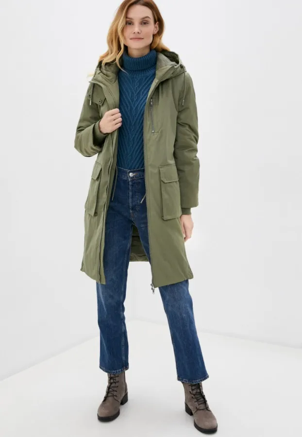 Длинная зимняя парка в цвете хаки без меха понравится тем, кто ищет базовую модель без лишних декоративных элементов. Такая парка идеально впишется в твой гардероб, если в нем есть несколько пар джинсов, повседневных брюк, пара объемных свитеров, замшевые ботинки и универсальные шапка и шарф.