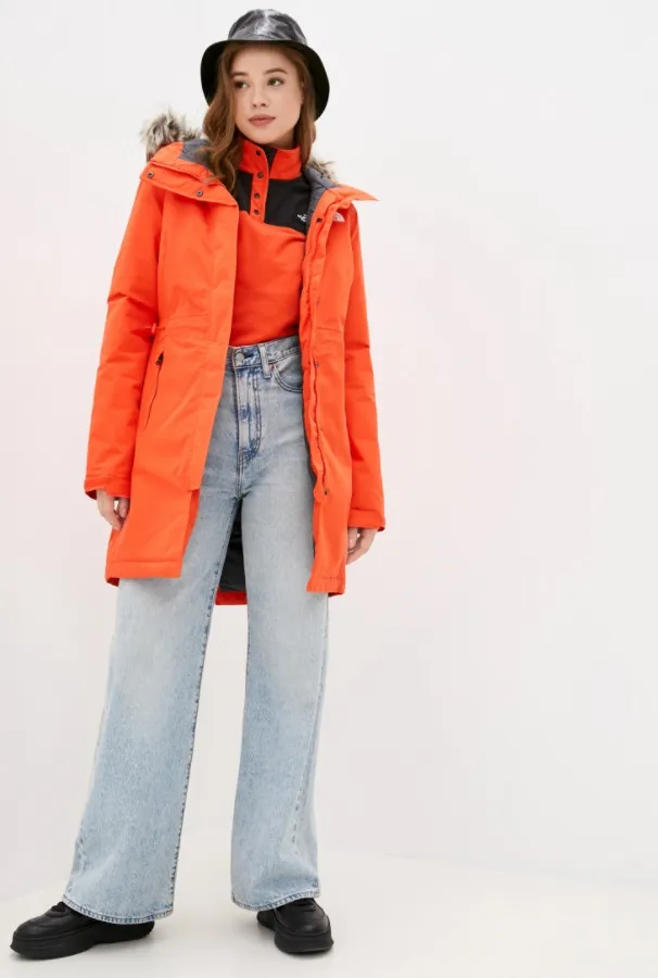 Хочешь чего-то более яркого? Тогда обрати внимание на парку в насыщенном оранжевом цвете. Модель выполнена из текстиля с применением технологии DryVent, которая обеспечивает водонепроницаемость куртки и хорошую циркуляцию воздуха. Парка также имеет утепленную подкладку, обеспечивающую отличную теплоизоляцию. Предлагаем носить ее с лаконичными однотонными вещами. Это могут быть черные широкие брюки или бежевые джоггеры, голубые джинсы или кожаные леггинсы. Что касается аксессуаров, то к данной модели идеально подойдет меховая или кожаная панама, стеганый шарф, нейлоновая сумка на пояс или через плечо.