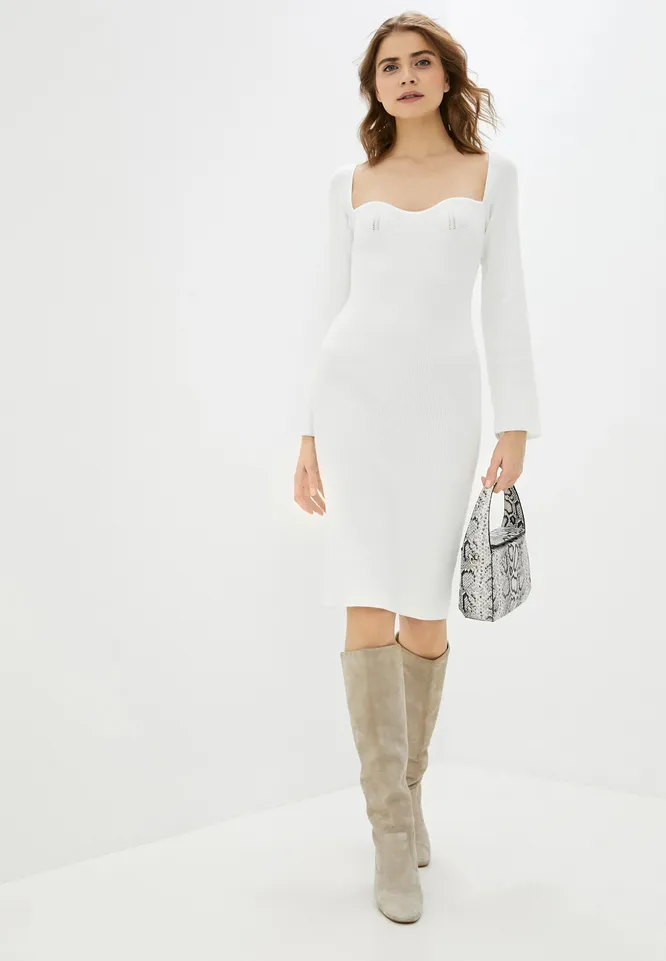 В новом сезоне модницы переоделись в кофты с сердцевидным вырезом. Так что смело делай ставку на шерстяное платье с таким же декольте. Оно совершенно точно освежит привычный повседневный аутфит.