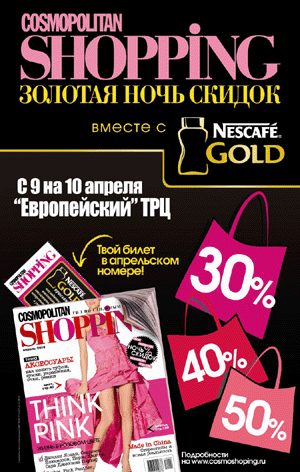 Чтобы попасть на это мероприятие, тебе понадобятся желание отлично провести время и билет. Желание у тебя, наверняка, уже есть, а билет ты без труда найдешь в апрельском номере CosmoShopping.