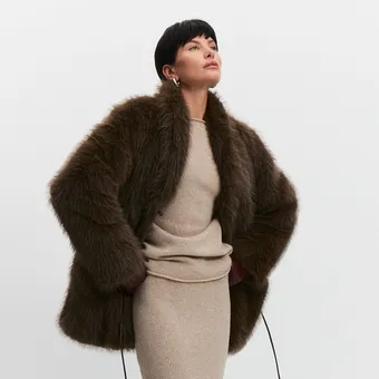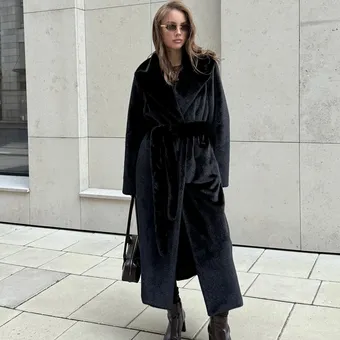 Классическая чёрная шуба, в которой ты моментально превращаешься в героиню песни «I’m Just a Simple Russian Girl». Советуем присмотреться: такие модели, как правило, становятся инвестицией на долгие годы.