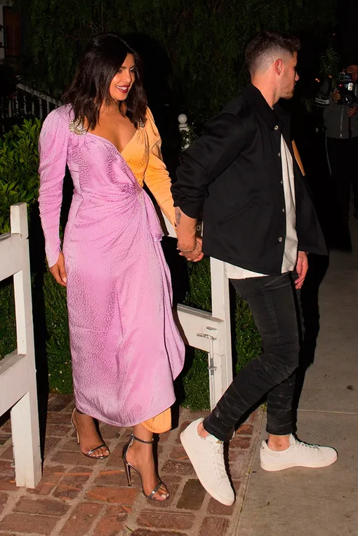 Прекрасное сочетание цветов, удачный фасон платья — весь образ можно было бы назвать стильным, если бы не брошки и невнятное оформление в виде точек. Зачем Приянка старается «добавить шику», если и так понятно, что девушка может себе позволить всё и чуточку больше.