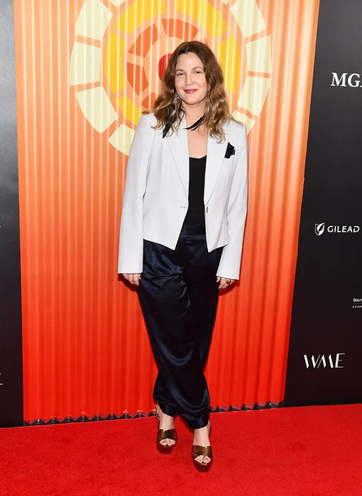 Улыбчивой Дрю Бэрримор стоило отказаться от этих олдскульных босоножек — все-таки эпоха гламура канула в Лету, а лейтмотив диско так и не был раскрыт в образе (если она, конечно, к нему вела). Да и по цветам отметку «отлично» не поставишь. К чему тут белый жакет, если все остальное черно-сине-золотого цвета (не считая зеленых сережек)?