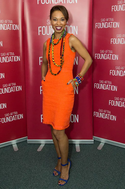 Оранжевое платье и синие босоножки уже создают достаточно яркий образ, не требующий никаких «дополнений», а особенно — множества пестрых украшений в этническом стиле.