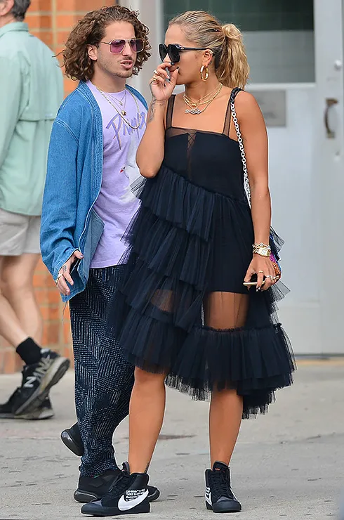 Total black — не панацея, и наряд Риты отлично это подтверждает. Платье, несочетающееся с обувью, и — вишенка на торте — миллион массивных золотых украшений.