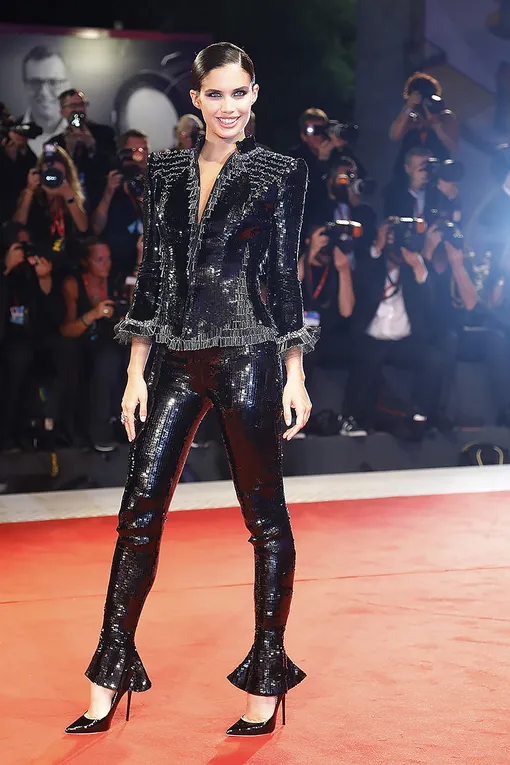 Сара Сампайо продемонстрировала свое видение костюма Женщины-кошки. Только вариант топ-модели явно намного гламурнее. Обтягивающий костюм изобилует пайетками: блеска получилось достаточно, а вот стиля не очень. Если бы «Женщина-кошка» стала мюзиклом, этот наряд стал бы образцом наряда главной героини.