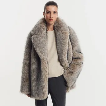 Модель, надо сказать, и правда удачная: достаточно длинная, чтобы хорошо сохранять тепло, и трендовая – «плечистая», объемная, выполненная под натуральную. Главная фишка этой шубы – эффект меха блюфрост, для которого характерен интересный отлив, переход цвета от светлого к темному.