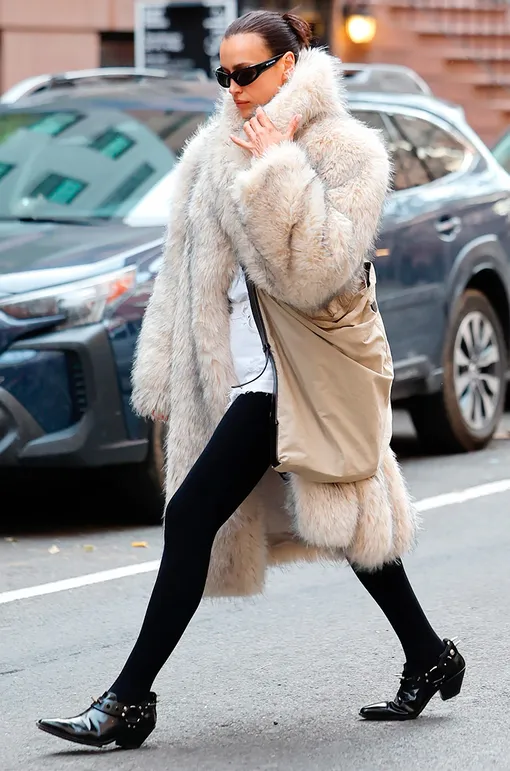 Ты наверняка уже видела эти кадры – они в соцсетях наделали много шума. Ирина Шейк была замечена на улицах Нью-Йорка: супермодель выгуливали свои бесконечные ноги и новую шубу. Аутфит в целом достоит того, чтобы разлететься по модным журналам: черные легинсы, укороченные остроносые ботильоны, увесистая миди-шуба, зализанный пучок и дерзкие черные очки – готовое комбо, чтобы вызвать вау-эффект. Но дело не только в удачном стайлинге.