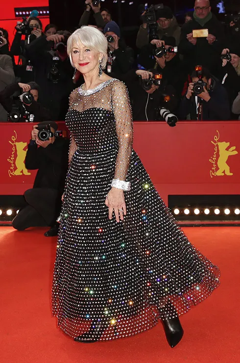 Главным нарядом кинофестиваля однозначно можно назвать эффектное платье Хеллен Мирен. На базовое платье из черного шелка она надела верхнее прозрачное платье из черной сетки, плотно украшенной стразами по всей поверхности. Блестящий выход!