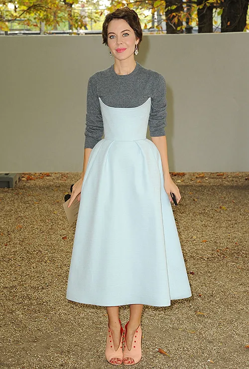 И носить тонкий невесомый джемпер под платьем. В идеальной ситуации — под платьем с твердым корсетным лифом.