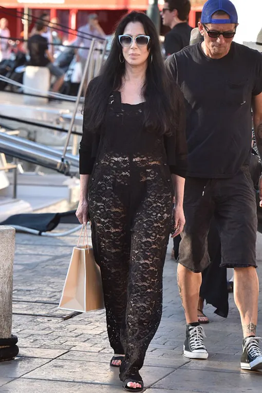 В следующем году Шер отметит 70-летие, что, впрочем, не мешает ей продолжать носить откровенные наряды. Вот и на этот раз звезда отправилась за покупками в игривом комбинезоне из черного кружева, не скрывающего практически ничего. К радости удивленных прохожих, Шер все же милостиво оставила неразгаданной тайну черного бермудского треугольника.
