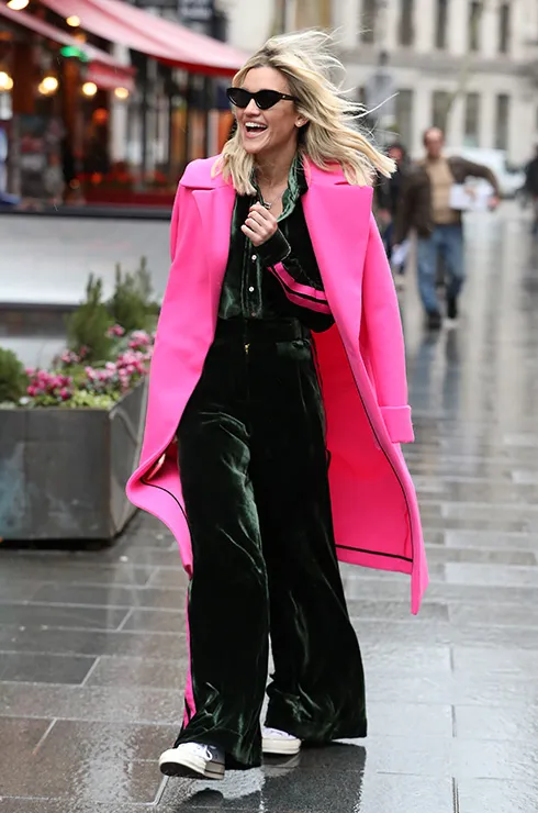 Яркую верхнюю одежду попробуйте скомбинировать с вещами сложной фактуры, например из бархата или велюра. Для такого сочетания лучше всего подойдет черный, насыщенный зеленый, глубокий синий или фиолетовый цвет. Чтобы не перегрузить образ, используйте нейтральные аксессуары базовых оттенков.