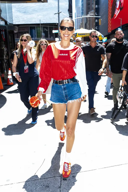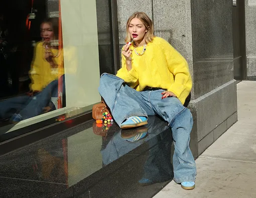 В моде как однотонные модели, например ярко-красные, как у Эмили Ратаковски, так и полностью разноцветные комбинации, напоминающие переливы радуги. Классно смотрятся и сочетания двух контрастных тонов — в основе и декоративных элементах, как у Джиджи и Беллы Хадид.