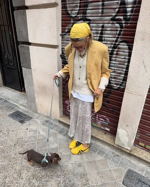 Ты уже знакома с этим стилистическим приемом? Самое время его опробовать. Инфлюенсер Лусия Де Луис дает мастер-класс по простому способу, который превратит любой наряд в нечто особенное: просто выбери «верхний» элемент одежды, в данном случае платок для волос, и «нижний» элемент - обувь - того же цвета. Вуаля, твой образ простой, но эффектный.