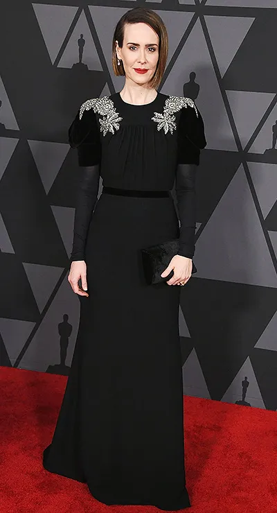 А эти дамы встретились лицом к лицу не в журнальных статьях, а на одном мероприятии — кинопремии Governors Awards, которую называют «репетицией "Оскара" (прошла 11 ноября). И, несмотря на то что у Сальмы Хайек было платье от Gucci, а у Сары Полсон — от Miu Miu, не заметить сходство было невозможно (и параллель явно не в пользу Сальмы).