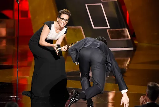 Если ты думаешь, что упасть в самый неподходящий момент могут только звездные красотки на хищных каблуках, то ты ошибаешься. Мужчины тоже не всегда твердо стоят на ногах. Так, поднимаясь за наградой «Эмми» в 2015 году актер, Джон Хэмм споткнулся и рухнул прямо на сцене. Неловко вышло...