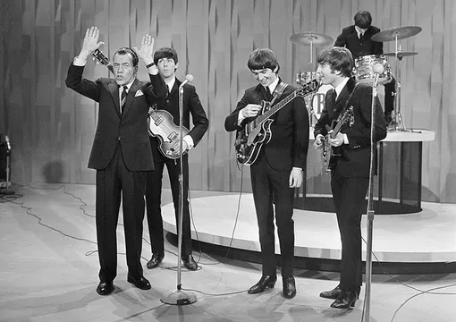Создатели вечернего шоу Стивена Кольбера тоже почувствовали эту связь и подготовили особый сюрприз - как для корейских артистов, так и для их многочисленных фанатов. The Late Show выходит в эфир из театра Эда Салливана. И именно на шоу Эда Салливана пятьдесят с лишним лет назад битлы дебютировали на американском ТВ. Для шоу The Late Show with Stephen Colbert воссоздали декорации, использованные во время исполнения песни Twist & Shout, на сцену поставили барабанную установку с логотипом BTS (заметьте повторение букв в названиях групп), стилизованную под битловский шрифт, Стивена Кольбера загримировали под Эда Салливана — и все это в черно-белом цвете.