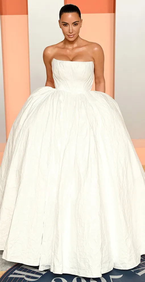 Главным ньюсмейкером стала, пожалуй, Ким в «свадебном» платье Balenciaga. В соцсетях уже шутят, мол, Кардашьян, как может, намекает о желании снова выйти замуж. А если не удастся в этом году пойти под венец, можно на худой конец украсить заголовки – вид сзади, в лучших традициях Ким, позволяет.