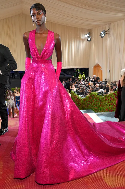 На Met Gala в 2022 году, тема которого звучала как «В Америке: антология моды», модель пришла в блестящем бальном платье от Michael Kors ярко-розового оттенка.
