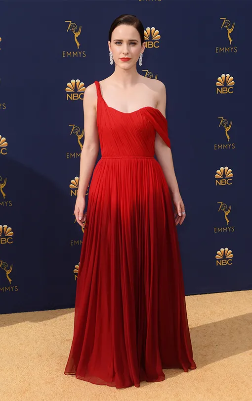 Рейчел Броснахэн сделала ставку на минимализм и яркий цвет — ее выход в алом платье, которое она «поддержала» помадой в тон, критики назвали одним из лучших образов прошедшей церемонии.