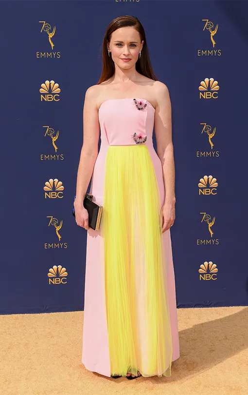 Желтый цвет стал одним из фаворитов прошедшей церемонии, однако не все поклонницы солнечной гаммы сделали удачный выбор. Элисон Бри, к примеру, отметилась желтым платьем странного кроя и фактуры, которое куда лучше смотрелось бы без вырезов под лифом.