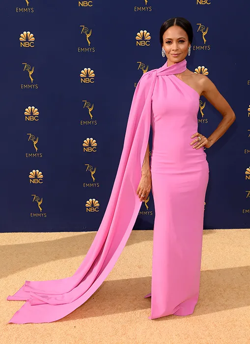 Удачный цвет и крой обеспечили Тэнди Ньютон попадание в топ лучших нарядов «Эмми-2018». Впрочем, нет предела совершенству — без шлейфа, делающего платье похожим на сари, образ был бы еще гармоничнее.