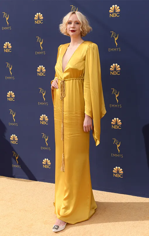 Стопроцентное попадание с цветом и фасоном платья, к сожалению, не уберегло Гвендолин Кристи от неудачного выхода — актрису подвела моментально мнущаяся ткань, сделавшая наряд похожим на штору.