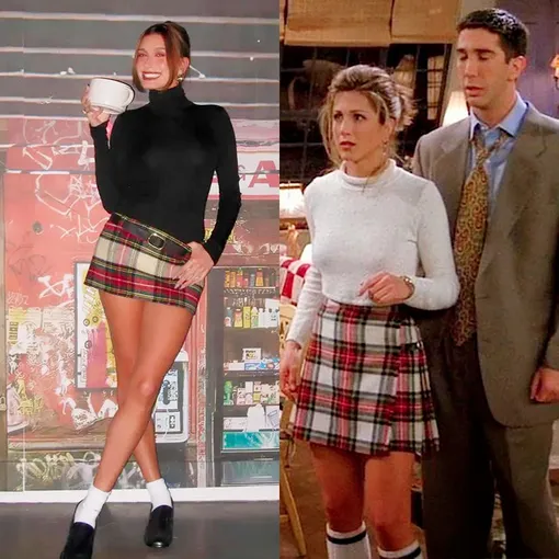 Дженнифер Энистон была настоящей иконой моды в 90-х — во многом благодаря своей культовой роли в сериале «Друзья», который шел с 1994 по 2004 год. Ее Рэйчел Грин была известна своим модным гардеробом, включающим платья-комбинации с принтом, клетчатые юбки, кроп-топы и забавные футболки.