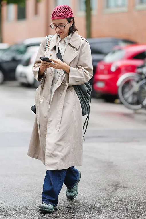 В Копенгагене инфлюенсеры носили эти шапки с яркими свитерами, легкими контрастными куртками и пальто — так что копируя их образы, легко можно составить гардероб на раннюю осень.